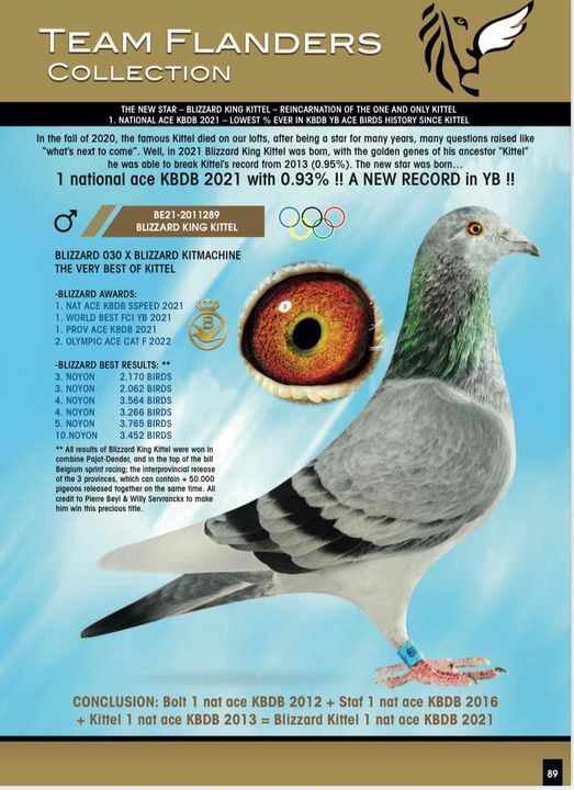 In 2024 and 2025 we will be the ONLY BUYERS of pigeons sold from the G.Parents of the 1st National Ace KBDB Champion "BLIZZARD KING KITTEL"